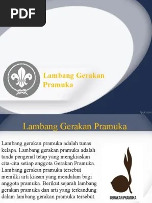 Secara umum, pramuka juga didefinisikan sebagai gerakan atau organisasi non formal yang mewadahi pelaksanaan pendidikan kepanduan. • lambang gerakan pramuka berupa gambar silhouette tunas kelapa sesuai dengan sk kwartir nasional no. lambang tunas kelapa atau nyiur ini juga seringkali disebut sebagai lambang cikal. lambang ini dipergunakan pertama kali sejak tanggal 14 agustus 1961, ketika presiden republik indonesia ir. Penggunaan lambang lambang gerakan pramuka dapat digunakan pada panji, bendera, papan nama kwartir dan satuan, tanda pengenal administrasi gerakan pramuka.